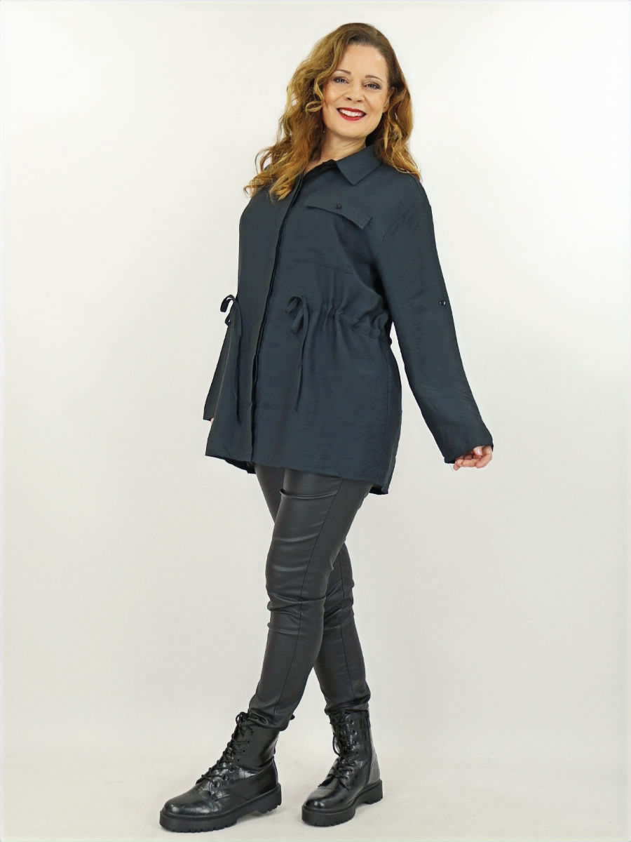 Combineren is geen probleem.. een jeans jasje, trui of T-shirt, het kan allemaal. Stop een gedeelte van je top in de band van de rok, hierdoor leg je een mooi accent op je taille. En door de rok met matte en zachte materialen te combineren, maak je de look minder "hard".